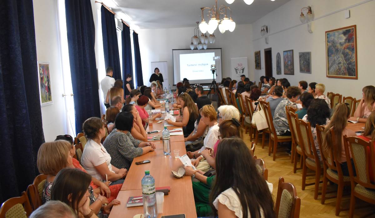 A résztvevőket Orosz Ildikó, a KMPSZ és a Rákóczi-főiskola elnöke köszöntötte, aki előadását a tanterv fogalma köré szervezte. A gyakorlati megközelítéssel és példákkal tarkított előadásban a hangsúly a tanterv műfajának fogalmára, felépítésére, szerkezetére, a tanítás-tanulás rendszerelméletű modelljeire, az oktatási-nevelési folyamatokra, kompetenciafejlesztésre esett. Orosz Ildikó emellett kiemelte a KMPSZ lényeges szerepét az anyanyelvi oktatás folyamatának fejlesztésében és vívmányait a magyar iskolák anyanyelvi oktatásának biztosítására.