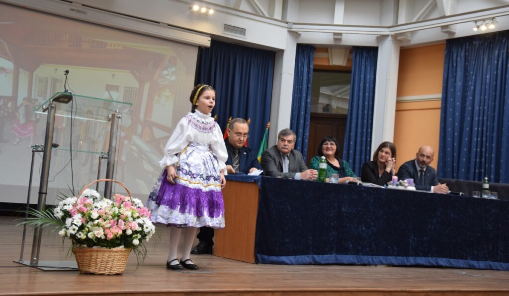 Őt követte Püspöki Laura, az Ungvári Dayka Gábor Líceum diákja, az „Által mennék én a Tiszán…” népdaléneklési verseny első helyezettje, aki alsónyéki népdalokat adott elő.