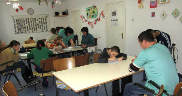 A tanulásról szólva… A fogyatékosokhoz házhoz járnak tanárok, egyénileg foglalkoznak velük, az otthonban pedig a házhoz járó pedagógusok tanterve szerint foglalkoznak a sérültekkel, írásra, olvasásra és számolásra tanítva őket, s ezzel segítik az említett tanárok munkáját. Arra is ügyelnek, hogy ne kopjon meg az otthonba járó idősebb sérültek tudása, játékos formában a huszonéveseket is rábírják, hogy írjanak, olvassanak, számoljanak.