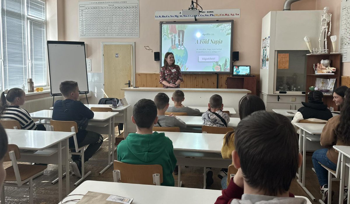 Az angol foglalkozást követően a líceum épületét tekinthették meg az érdeklődők. A kémia szaktanteremben Svorák Karina biológia tanárnő várta a diákokat a Föld Napja c. interaktív előadással.