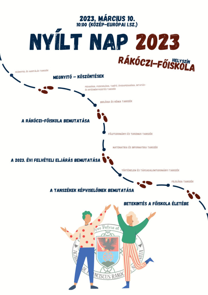 A nyílt napra az intézmény vezetői, oktatói várják azon továbbtanulni vágyókat, akik szeretnének betekintést nyerni a felsőoktatási felvételi eljárásba, valamint a Rákóczi-főiskola oktatási folyamatába. A látogatók – legyenek akár diákok, szülők, tanárok – tájékoztatást kaphatnak a 2023. évi felvételi eljárásról, a Rákóczi-főiskola által nyújtott lehetőségekről, találkozhatnak az egyes szakok oktatóival.