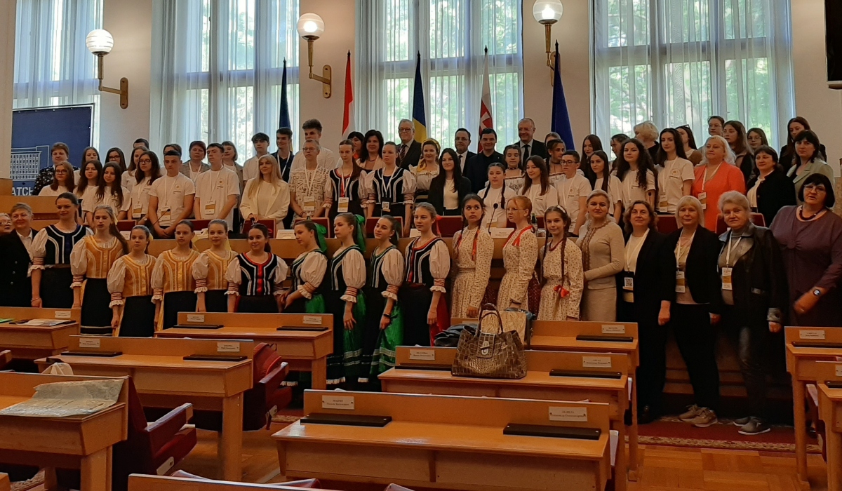 A köszöntő beszédeket követően a román, szlovák és magyar diákok csoportjai egy-egy népdalt énekeltek el.