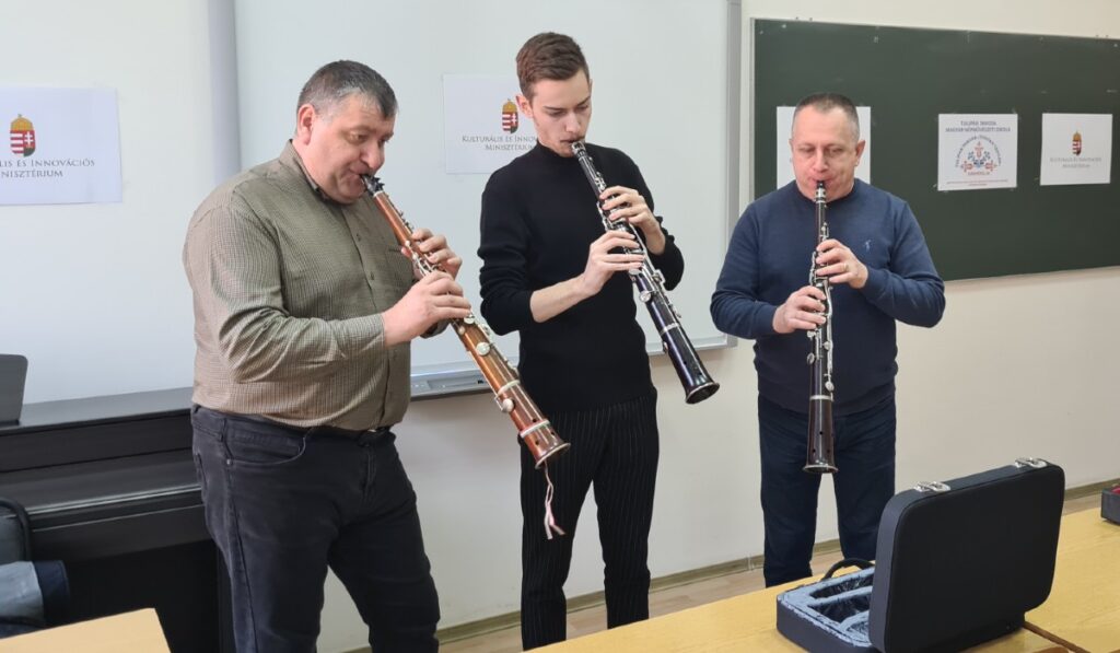 Hívogató-tárogató zenével köszöntötte Schreiner Sándor klarinét- és tárogatóművész a képzés 39 résztvevőjét.