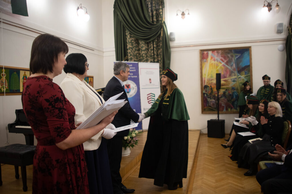 A diplomák általános ismertetése után a végzősök Orosz Ildikótól, a Rákóczi Egyetem elnökétől és Csernicskó Istvántól vehették át megérdemelt okleveleiket, majd felcsendült a diákhimnusz.