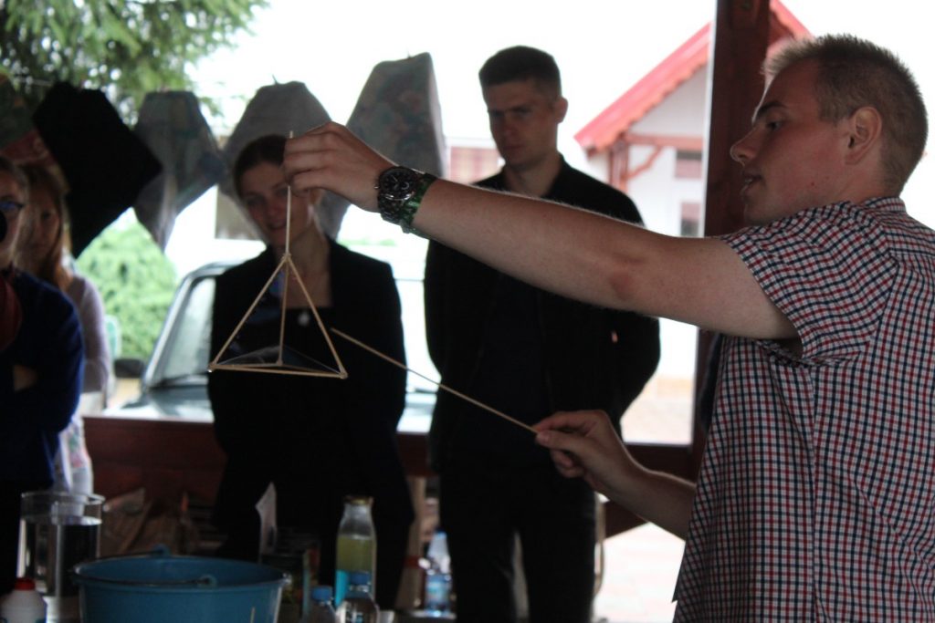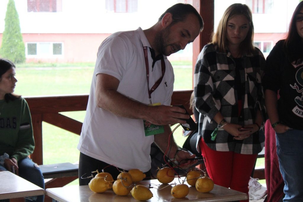 Az ebéd előtt Gál Dávid, Molnár Krisztián és Szanyi István fizikai kísérleteket mutattak be.