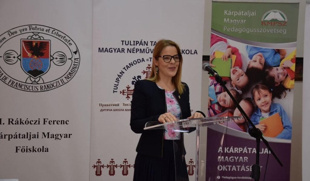 A továbbiakban Orosz Ildikó, a KMPSZ és a Rákóczi-főiskola elnöke köszöntötte a jelenlévőket és tartotta meg Anyanyelvi oktatás Kárpátalján című előadását. Ebben a beiskolázási programokra, az új kihívásra adható válaszokra, ennek elemeire hívta fel a figyelmet, kiemelve, hogy a Rákóczi-főiskola motorja és húzó ereje a magyar nyelvű beiskolázásnak, azonban a képzések bővítése sem elhanyagolható. Ezek egyik lehetősége az iskolán kívüli programok megléte, úgymint a Tulipán Tanoda hálózata, vagy a KMPSZ és a „GENIUS” Jótékonysági Alapítvány által szervezett tehetséggondozó hétvégék, szakkörök, nyári táborok.