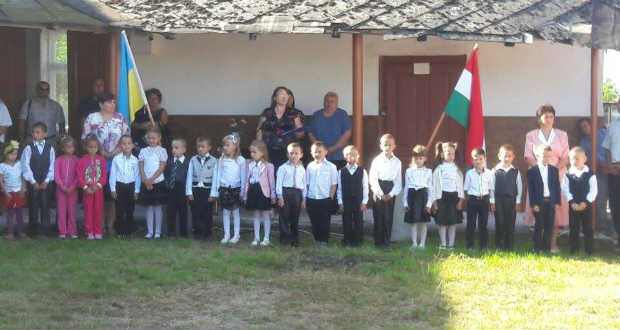 Az első csengő ünnepének hivatalos része 9.00 órakor az ukrán és a magyar himnusz éneklésével kezdődött rendhagyó módon az alsó osztályosok udvarán. Bodnár Tünde ideiglenesen megbízott iskolaigazgató köszöntőjében kiemelte, hogy ez alkalommal öröm, hogy az intézménynek több épülete és udvara van. A főépület tetőszerkezetének cseréje még folyamatban van, ezért érte a kisiskolásokat az a megtiszteltetés, hogy mindenki az elsősök osztálya előtt gyűlt össze.