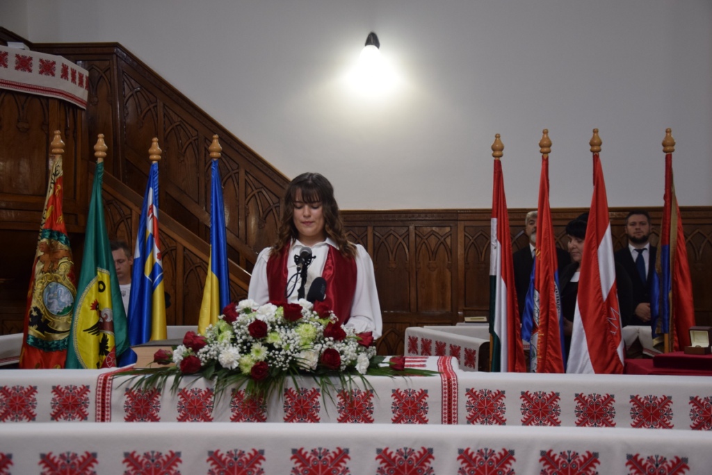 Az esemény Kárpátalja történelmi zászlóinak felvonultatásával kezdődött, melyeket tárogatószóra a főiskola kuruc kori viseletbe öltözött hallgatói vittek be a templomba. Ezt követően Taracközi Ferenc, a Beregszászi Református Egyházközség vezető lelkipásztora köszöntötte a résztvevőket Isten igéjével, Zsoltárok könyve kilencvenedik részével.