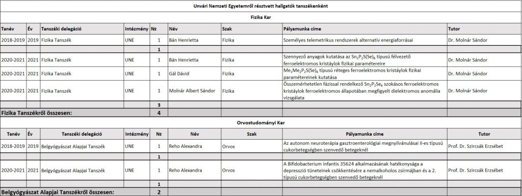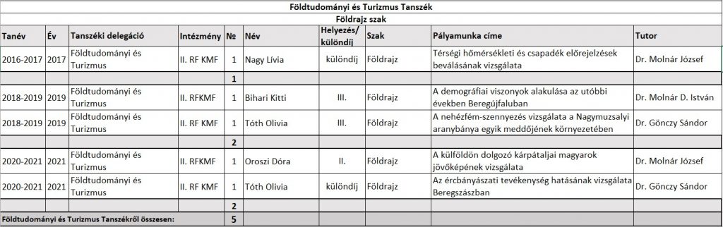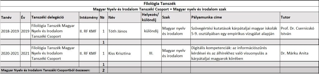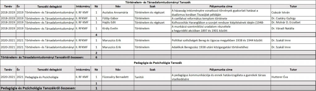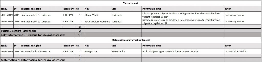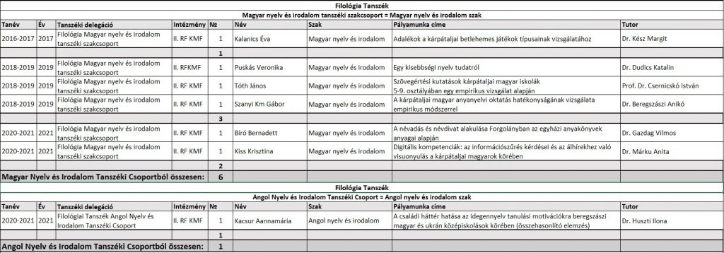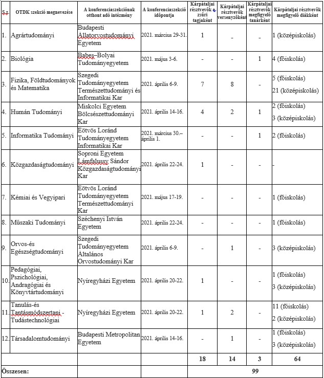 Az elmúlt évek során a kárpátaljai diákok jelentős számban vettek részt az OTDK különböző szekcióiban, az alábbiak szerint:
