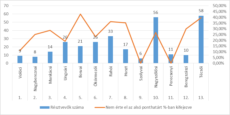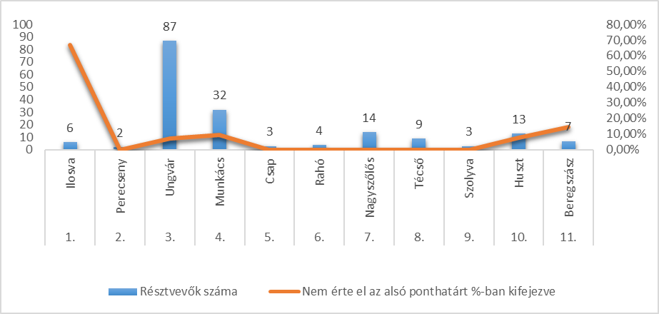 | Ssz. | Megye | Résztvevők száma | Nem érte el az alsó ponthatárt %-ban kifejezve |