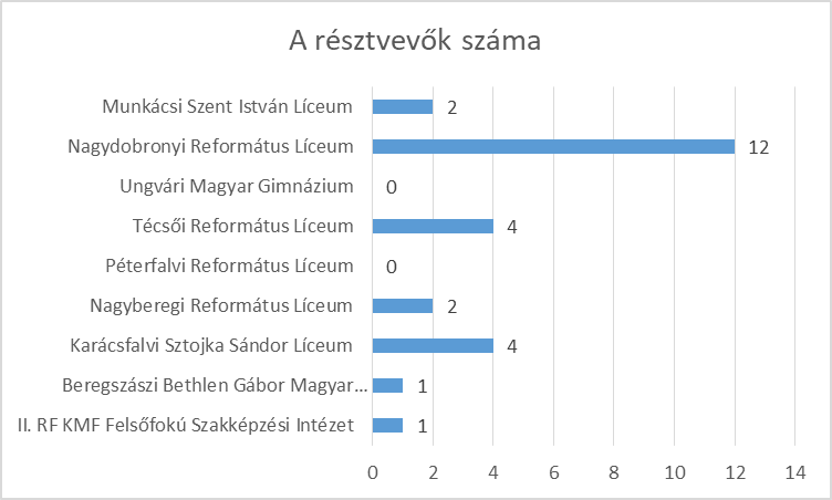 A fizika külső független tesztvizsga nem volt kötelező, feltehetően csak azok választották akiknek követelmény volt a szakválasztásukhoz. A magyar tannyelvű középiskolák érettségizői körében egyáltalán nem volt népszerű vizsgatárgy. Az összes magyar tannyelvű iskolából csupán kilenc érettségiző választotta a fizika független tesztvizsgát. Mindössze a Csapi 2. Számú Középiskola, az Ungvári 10. Számú Dayka Gábor Középiskola, a Kisgejőci Középiskola, a Kisdobronyi Középiskola, a Derceni Középiskola, a Nagydobronyi Középiskola és a Bátyúi Középiskola 1-2 érettségizője mérettette meg tudását fizikából. A középiskolák résztvevőinek számát az alábbi ábra szemlélteti.