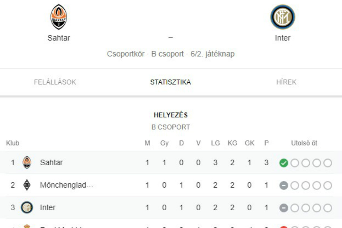 A Sahtar Donyeck az Internazionaléval mérkőzik meg a BL következő fordulójában