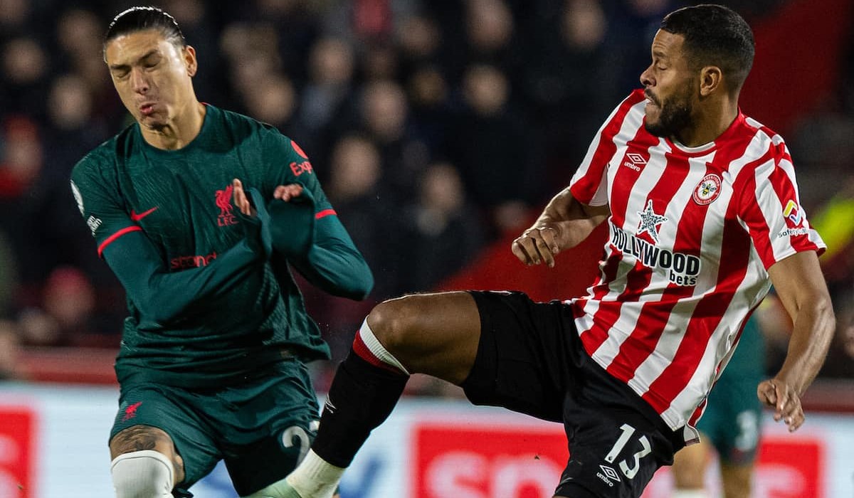 Az FC Liverpool idegenben is esélyeshez méltóan kezdte a mérkőzést. Ám hiába voltak helyzetei Darwin Núneznek vagy éppen Kosztasz Cimikasznak, a vörösök helyett a 19. percben a Brentford szerzett vezetést, amikor egy jobb oldali szöglet után Ibrahima Konaté bal vádlijáról Alisson kapujába pattant a labda (1-0). A gól érezhetően megfogta Jürgen Klopp csapatát, a Brentford pedig a szünetig három újabb gólt szerzett. De ezek közül kettőt a VAR segítségével érvénytelenítettek. A harmadikat viszont a videóbíró mellett a Liverpool brazil kapusa sem tudta megakadályozni, mert csak néhány milliméterrel a gólvonal mögül halászta ki Yoanne Wissa fejesét (2–0).
