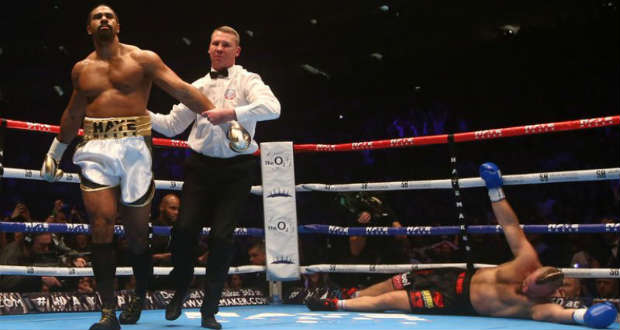 Három és fél éves kihagyást követően szombaton visszatért a szorítók világába a korábbi cirkáló-, majd nehézsúlyú világbajnok David Haye.