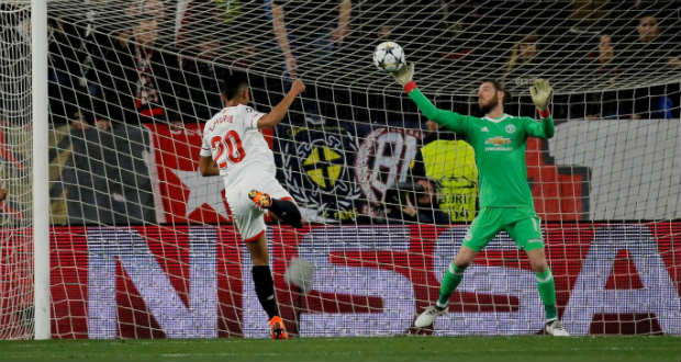 A Sevilla – amely eddig sosem jutott be a legjobb nyolc közé a BL-ben – alakított ki több helyzetet, az első játékrész hajrájában egy perc alatt kétszer is hatalmasat bravúrral mentett a manchesteriek kapusa, David de Gea, előbb Steven N’Zonzi, majd Luis Muriel fejesénél. Utóbbi igazi világklasszis alakítás volt.