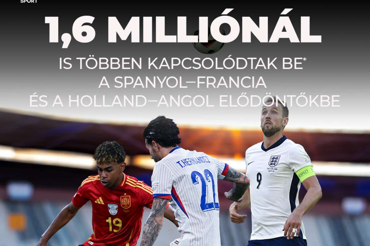 A magyar televíziós piac idei legnézettebb műsorait az M4 Sport adja. A labdarúgó-Európa-bajnokság magyar vonatkozású mérkőzései mellett a keddi és szerdai elődöntőkkel folytatódott ez a nézettségi tendencia: 1,6 milliónál is többen kapcsolódtak be mind a spanyol–francia, mind a holland–angol összecsapásba.
