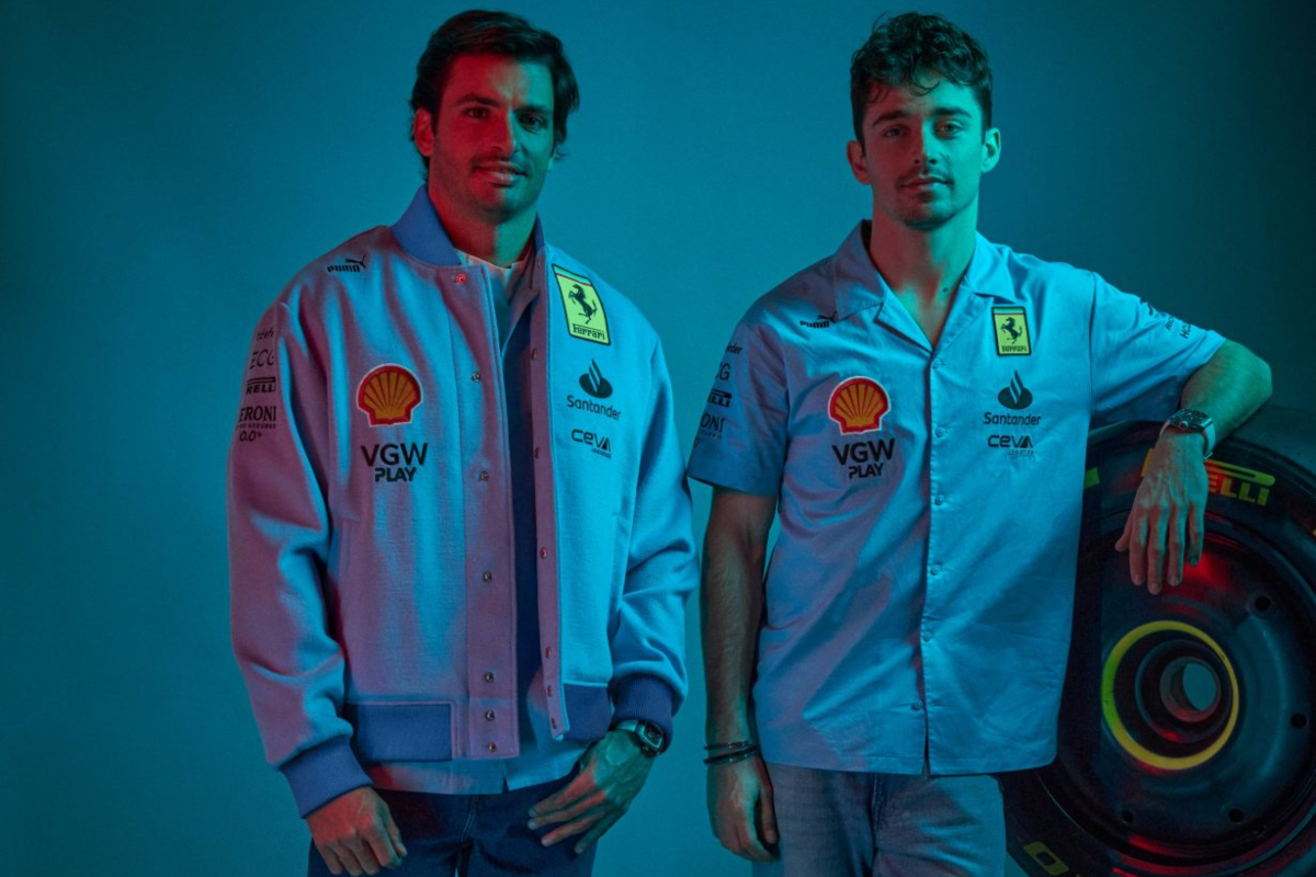 Nyitókép: A Ferrari versenyzői, Carlos Sainz (b) és Charles Leclerc a 2024-es F1-es Miami Nagydíjra készült kék alapszínű ingben, illetve dzsekiben (forrás: Scuderia Ferrari HP/X)