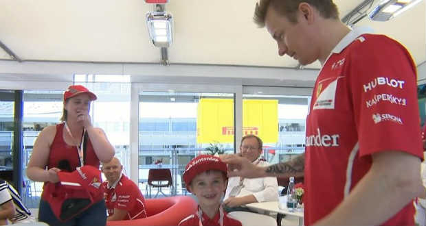 Ma a napi cukiság díj is kiosztásra került! Kimi Räikkönen kiesésekor egy kis rajongónál a lelátón eltörött a mécses, és ezt a rendező is megmutatta az eset után. A Liberty Média emberei pedig valószínűleg átballagtak a lelátóhoz, és behozták a kissrácot a Ferrari kiszolgálóegységébe. Ott pedig az ő nagy hőse várta, akivel közös kép is készült, és megkapta a sapkáját is…
