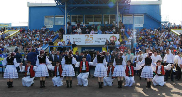 Mihajlo Rivisz, a Kárpátaljai Megyei Tanács elnöke köszöntötte a jelenlévőket, kihangsúlyozva, hogy Magyarország az elsők között ismerte el a független Ukrajnát, és 25 éve töretlenül segíti és támogatja az európai integráció felé vezető úton, legyen szó a vízummentesség megadásáról, vagy a gázellátás biztosításáról.