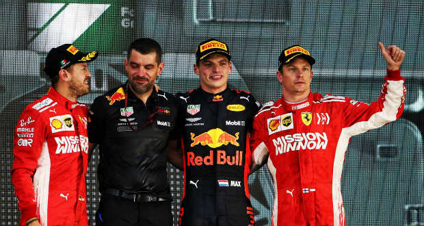 Húsz körrel a leintés előtt Verstappen, Ricciardo, Vettel volt az első három sorrendje, Hamilton pedig ötödikként száguldott Räikkönen mögött. Ricciardo műszaki hiba miatt 10 körrel a vége előtt feladni kényszerült a futamot, így a Red Bullnak nem jött össze a kettős győzelem, Verstappen viszont az F1 történetének első olyan versenyzője lett, aki pályafutása során úgy nyert öt futamot, hogy 79 versenyén egyszer sem rajtolt a pole pozícióból.
