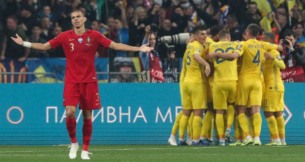 Az ukrán labdarúgó-válogatott kijutott a 2020-as Európa-bajnokságra, mivel a selejtezősorozat hétfői játéknapján 2-1-re legyőzte a címvédő portugál csapatot.