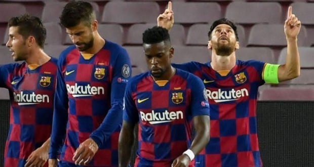 A spanyol FC Barcelona az olasz Napoli csapatát fogadta üres lelátók előtt a Camp Nou stadionban. A párharc első mérkőzése 1:1-es döntetlennel ért véget Olaszországban. A Napoli az újrakezdés óta gyenge formában futballozott, bár megnyerték az Olasz Kupát, a bajnokságban csupán a hetedik helyen végeztek Gattuso tanítványai. A Barcelona sem büszkélkedhetett eddig kirobbanó formájáról, mivel ötpontos előnyből vesztették el a bajnokságot a Real Madriddal szemben. A katalánok zsenije, Lionel Messi is csupán kétszer volt eddig eredményes a BL-kiírásban. A Napoli jobban kezdte a mérkőzést, viszont csak kapufáig jutottak. A 10. percben Lenglet szöglet utáni fejesével már vezetést szerzett a hazai csapat, majd Messi növelte kettőre a katalánok előnyét a 23. percben. Hét perccel később ismét az argentin világsztár villant meg, de kezezés miatt visszavonták gólját a videobíró használata után. A 46. percben mégis háromgólosra nőtt a Barca előnye, Suarez értékesítette a Messi buktatásáért megítélt büntetőt. A videobíró (VAR) miatti 5 perces hosszabbításban az olaszok is kaptak egy jogos tizenegyest, amit Insigne lőtt a hálóba (3:1). A második játékrészben már nem született újabb gól, így a Barcelona 4:2-es összesítéssel jutott a negyeddöntőbe.