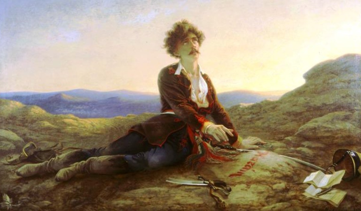 Beteljesedett hát Egy gondolat bánt engemet… című verse: „Ott essem el én, / A harc mezején, / Ott folyjon az ifjui vér ki szivembül, / S ha ajkam örömteli végszava zendül, / Hadd nyelje el azt az acéli zörej, / A trombita hangja, az ágyudörej”.