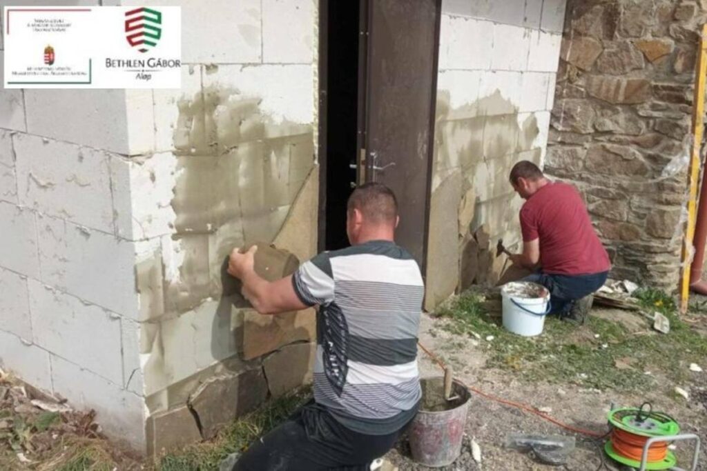 Szombaton a férfiak díszkővel szépítették a panzió falát, mások követ raktak és igazítottak a szauna ösvényén. Szűcs Zoltán és Galajda Katalin gondoskodott az ízletes ebédről, a menü bográcsban főtt őzgulyás füstölt csülökkel volt. Köszönjük az őzhúst Galajda Imrének!