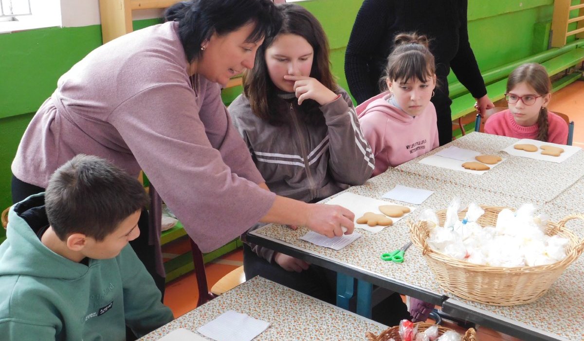 A harmadik asztalnál mézeskalács díszítésre volt lehetőség, amelyben Lőrinc Zsuzsanna volt a diákok segítségére. A gyerekek két mézeskalácsot kaptak, amelyeket kedvükre csinosíthattak. Azonban csak az egyik édességet készítették saját részre, a másik sütemény azokba a csomagokba került, amelyeket a csonkapapi, kispapi és hetyeni időseknek ajándékoznak majd a szervezők az adventi időszak alkalmából.