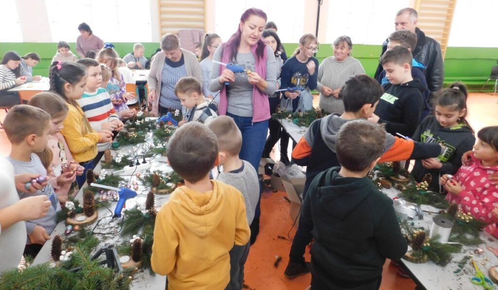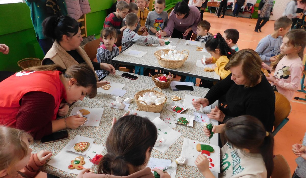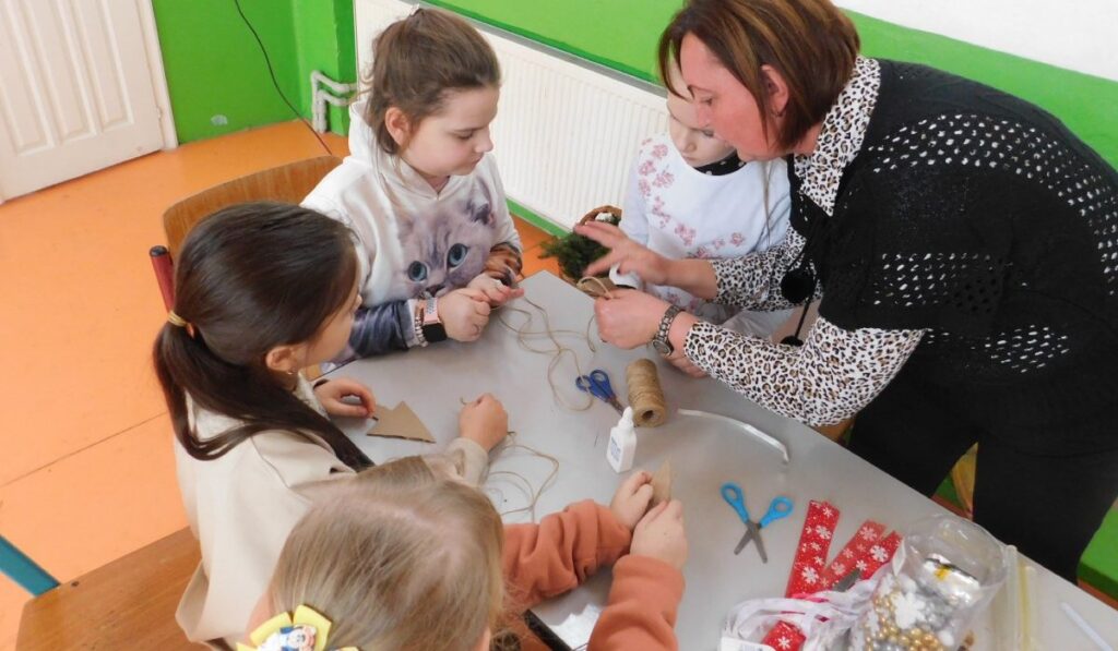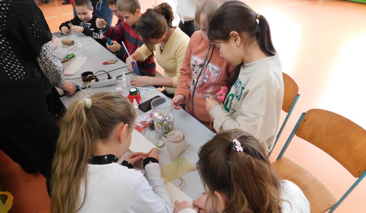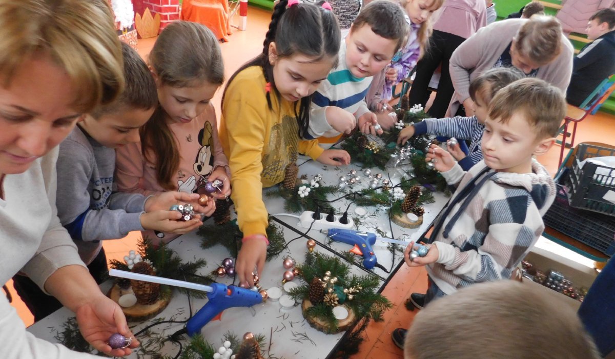 Az első asztalnál kézzel készített karácsonyi díszek készültek a helyi gimnázium pedagógusainak segítségével. Minden gyerek saját ízlésének megfelelő díszeket alkothatott, amelyek kiváló ékei lesznek majd a karácsonyfának.
