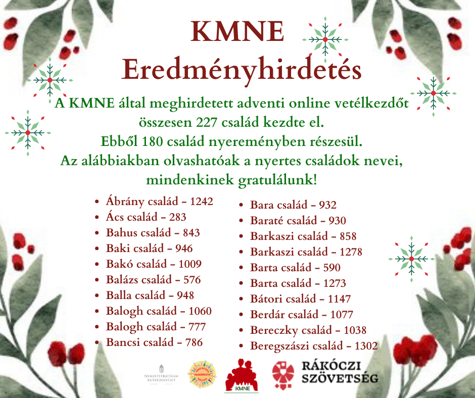 A jutalmakat idén a Kárpát-medencei Családszervezetek Szövetsége, a Rákóczi Szövetség és a Nemzetstratégiai Kutatóintézet támogatja! Köszönjük nekik!