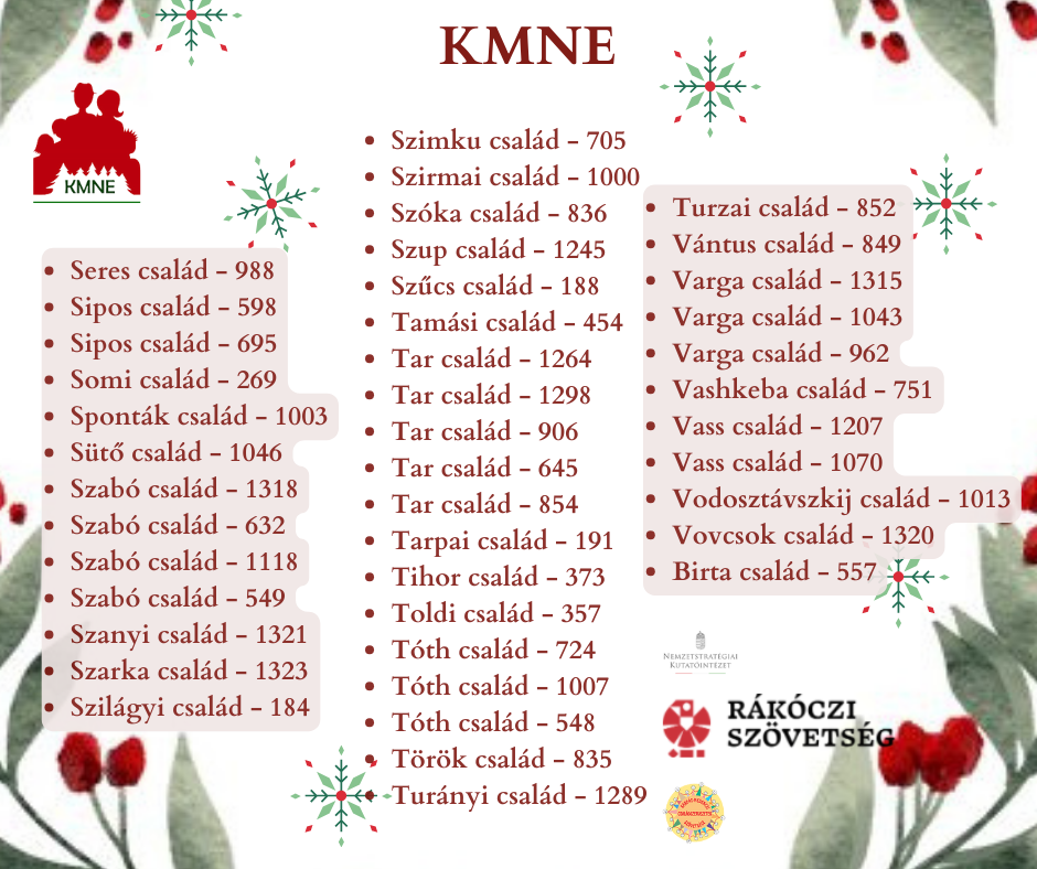 A Kárpátaljai Magyar Nagycsaládosok Egyesülete 2025-ben is meghirdette az adventi online vetélkedőt. A verseny három héten keresztül zajlott. Minden hétköznap a KMNE Facebook-oldalára került fel egy feladat, amelynek a megfejtését másnap délig kellett beküldeni.