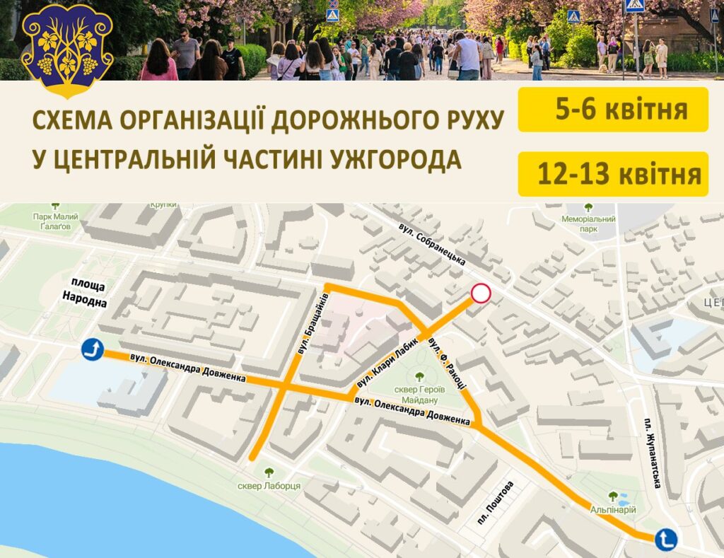 A virágzás idején — április 5–6-án és 12–13-án — Ungváron ingyenes túrákat is tartanak, amelyek 14 órakor kezdődnek a Posta téren, a „Я ❤️ Ужгород” fotózóna közelében.