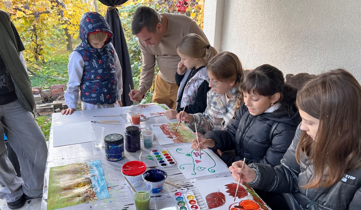 Ezután egy nagyon izgalmas program következett: a fiatalok a festőművész irányításával egy alkotóműhelyben vehettek részt. A festéshez szabadon választhattak témát. Olekszandr Zsilcov csupán azt hangsúlyozta, hogy a művészetben el kell engednünk a félelmeinket, és teret kell engednünk az érzelmeknek. A résztvevők hallgattak a tanácsára, szebbnél szebb festményeket készítettek. Legtöbbjüket az ősz és a munkácsi vár ihlette meg. Az alkotásokat természetesen hazavihették és megmutathatták szüleiknek.