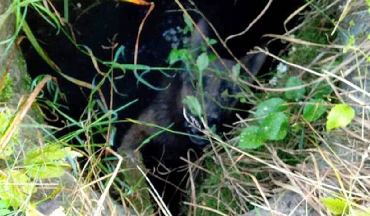 A németjuhász körülbelül egy 2,5-3 méter mély utcai aknába esett bele, ahonnan sikeresen kiszabadították és sértetlenül visszaadták gazdájának.