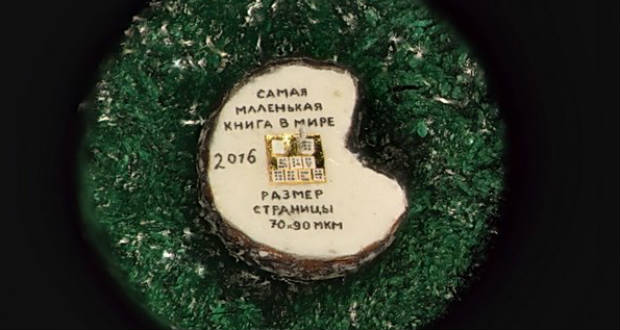 Egy fél mákszemen elfér a világ legkisebb, mindössze 0,07 milliméterszer 0,09 milliméteres könyve, amelyet egy orosz tudós készített, remélve, hogy alkotásával bekerül a Guinness Rekordok könyvébe.