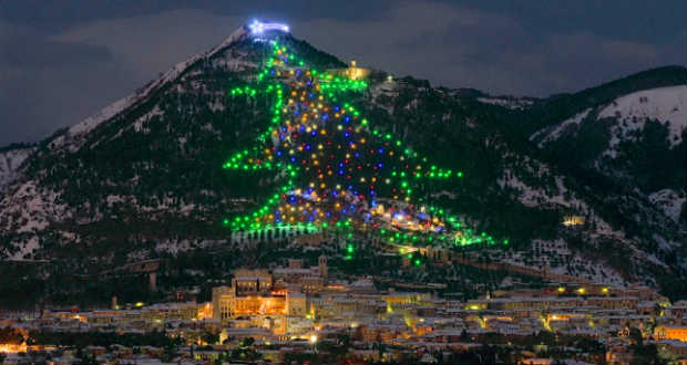 XVI. Benedek pápa, Ferenc elődje 2011-ben kapcsolta fel Gubbio fényeit. A középkori város fényes karácsonyfáját 1991-ben felvették a Guinness-rekordok könyvébe is: egy közeli domb oldalán több száz izzó alkotja a 750 méter magas és 450 méter széles karácsonyfa körvonalait.