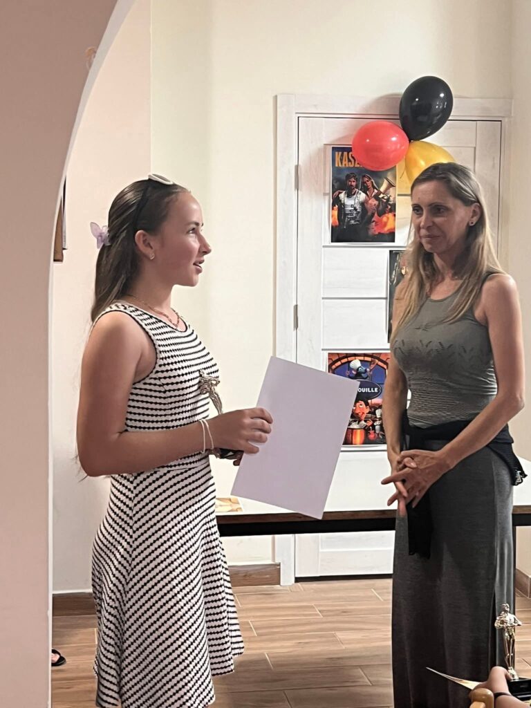 Egy kis játék és pizzázás után az épület nagyterme Oscar-díj-átadó ünnepség helyszínévé változott. Volt lufi, vörös szőnyeg, Oscar-díjak, oklevelek és torta is. Az előző napi forgatás értékelése során a szervezők mindenki munkáját nagyon jónak minősítették. Ezután bemutatták az elkészült kisfilmet, melyet az érkező szülők is megtekinthettek. Mindenkinek tetszett az alkotás hangulata, témája és stílusa.