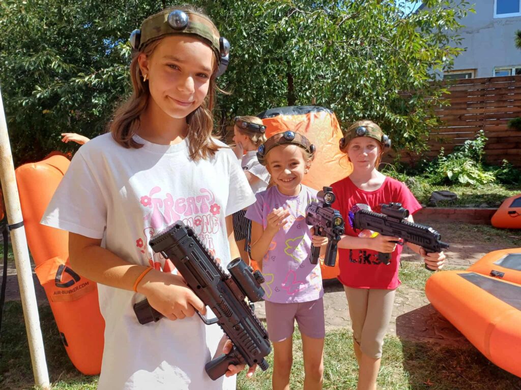 A tábor első óráit a gyerekek ismerkedéssel töltötték, melyet játékos formában, sok nevetéssel és jókedvvel vezettek le a szervezők. Az ismerkedés után Oniszkó Györgyi kommunikáció és médiaszakértő, a Rákóczi Médiacentrum munkatársa érkezett a „Hogyan mesél a film? – a film eszközei” című elődásával. Bevezetésképpen a filmforgatás összetett, de annál izgalmasabb folyamatáról mesélt, illetve olyan szakmákról, melyek a filmgyártáshoz kapcsolódnak. Majd rátért a hangok, zörejek témájára. Videókkal, filmrészletekkel szemléltette azt, hogyan keletkezik a filmben a párbeszédeken és a zenén kívül hallott hang. Ilyen a falevelek susogása, a léptek hangja, a különböző tárgyak érintése vagy egy sóhaj. Rendkívül izgalmas volt szembesülni azzal, hogy a zörejszakemberek a szalonnapirítás hangjával idézik elő az eső hangját. A szalonna témájánál a csapat már lassan meg is éhezett. Érkezett is a finom gyros tál, melyet jó étvággyal fogyasztottak el. És jól is jött az energia. Ugyanis a délutáni program lézerharccal folytatódott. A hőség ellenére a résztvevők két órán át fáradhatatlanul játszották az izgalmas játékot.