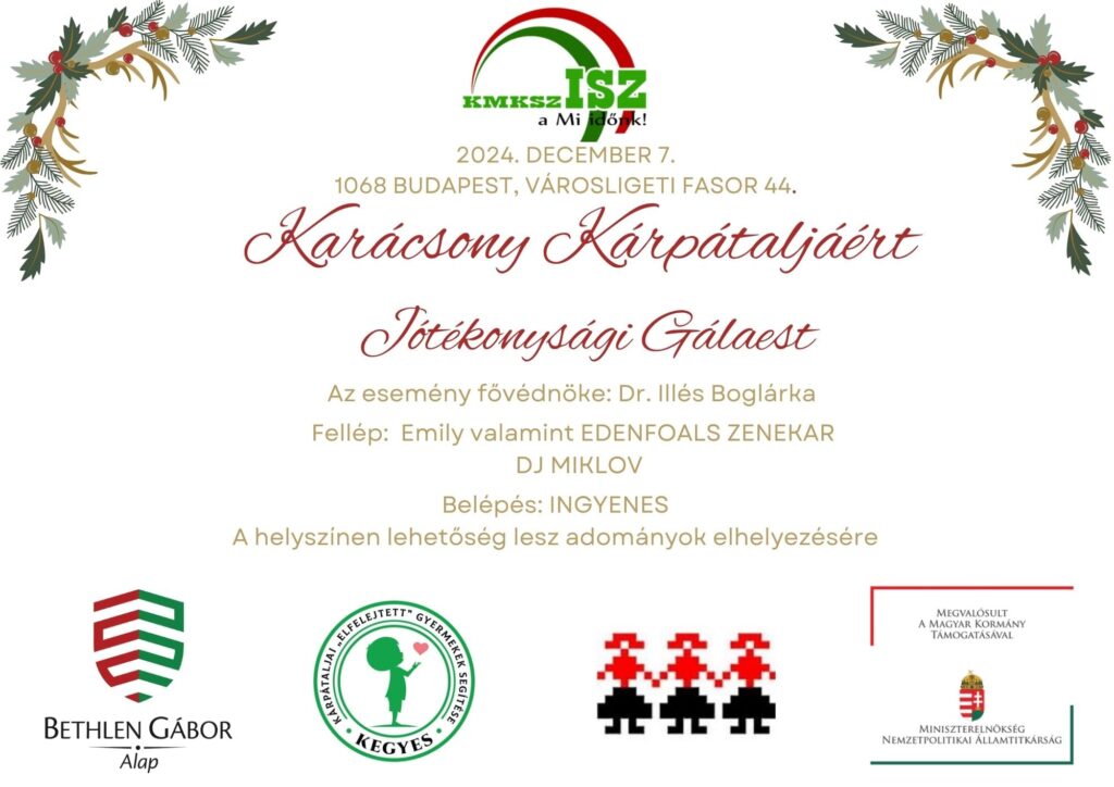 Idén is megszervezi a Karácsony Kárpátaljáért elnevezésű jótékonysági gálaestet a Kárpátaljai Magyar Kulturális Szövetség Ifjúsági Szervezete (KMKSZ ISZ) december 7-én.
