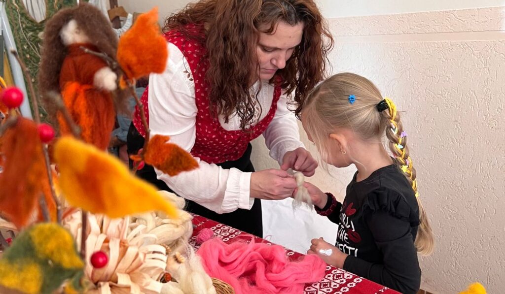 A délelőtt másik meglepetése Gogola Éva volt, aki kézműves foglalkozást tartott a gyerekeknek. A hittanosok nemezből készíthettek tündéreket és tököket. Ők maguk választhatták ki a tündérek ruhájának, hajának színét, formáját, valamint kialakíthatták a tököket. Nagyon ügyesen járt a kezük. Többen nem csak egy, hanem több tárgyat is elkészítettek, melyeket haza vihettek magukkal.