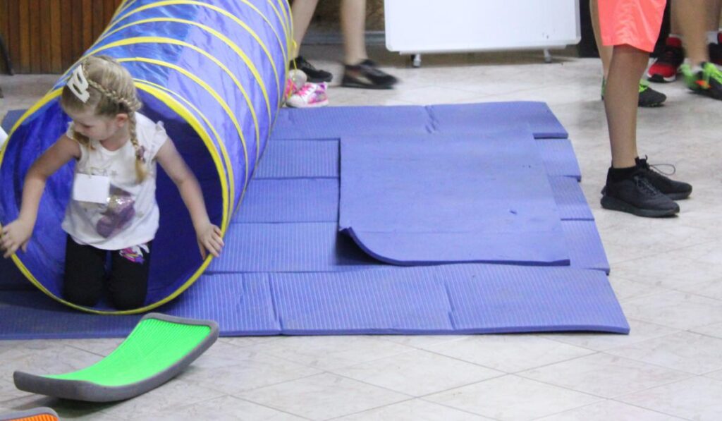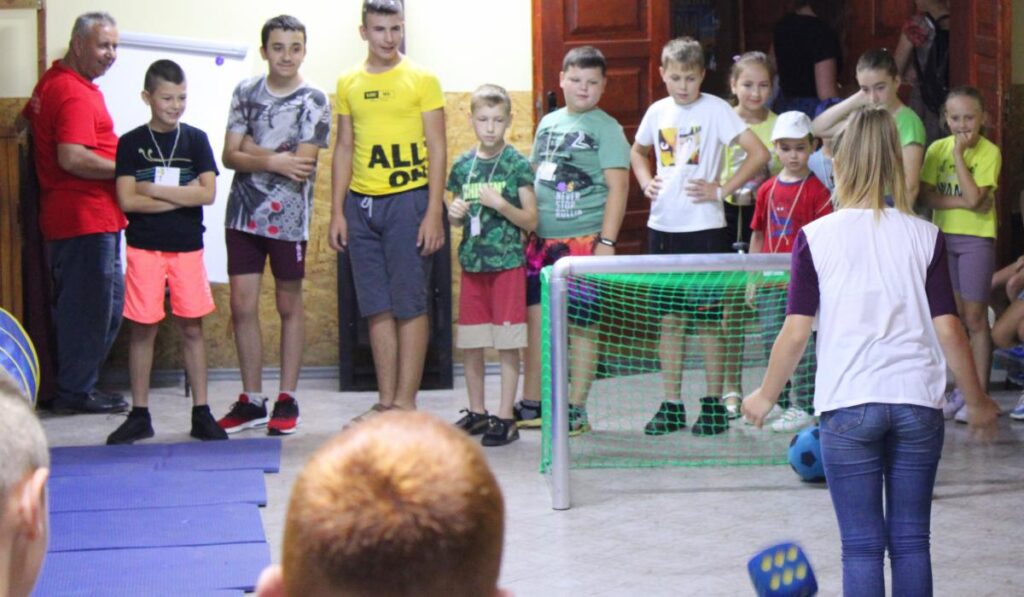 A gyerekek közös bemelegítéssel kezdtek, majd két csapatban ötötölős versenyt játszottak. Ezt követően az egyik csapat egy izgalmas akadálypályát teljesített, míg a másik művészetterápiás foglalkozáson vett részt. Mindkét csapat sikeresen teljesítette az akadályokat, a foglalkozáson pedig színes szélforgókat készítettek. Ezalatt arc- és kézfestésre is alkalmuk nyílt.