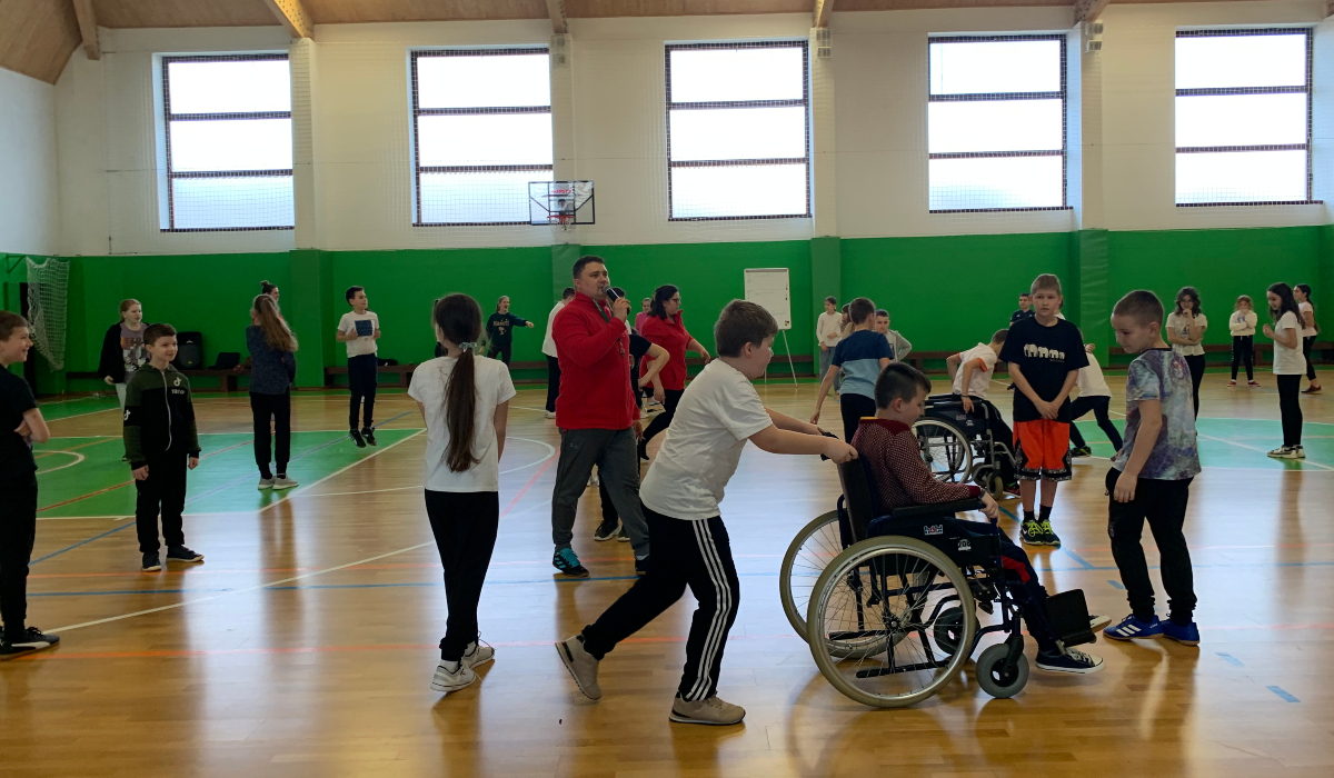 A délutánon mozgásos és kézműves foglalkozásokkal várták az 5-6. osztályosokat. A játékokon főszerepet kapott az ügyesség és a csapatmunka. A programon a gyermekek azt is megtapasztalhatták, hogy a mozgásban korlátozott társaik hogyan látják a világot: kipróbálták, milyen az, amikor az ember élete egy kerekesszékhez van kötve.