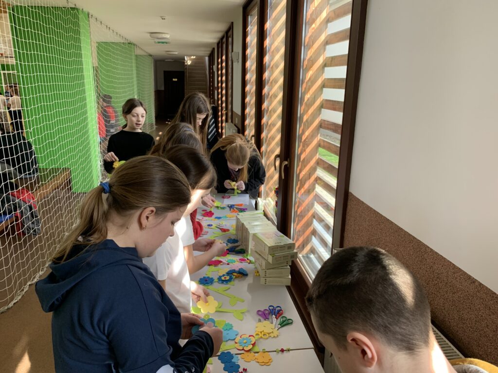 A kézműves foglalkozás témája – március révén – a tavasz volt. A diákok virágfüzéreket készíthettek.