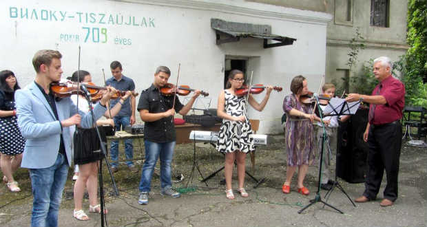 Közben a park másik részén a felnőttek tartalmas kikapcsolódásáról gondoskodtak az egymás után fellépő zenei együttesek, szólózenészek és -énekesek. Elsőként a Tiszaújlaki Művészeti Iskola tanárai és diákjai léptek a nagyérdemű elé. Az iskola zenekarának előadásában felcsendült a Schindler listája c. film filmzenéje. A közönség ütemes tapssal jutalmazta a rábaközi táncot lejtő tanulókat. Hatalmas tapsot kapott a Pancsoló kislány c. örökzöld slágert előadó Csűri Vanda, a művészeti iskola legfiatalabb, mindössze nyolcéves növendéke. Elgyönyörködhettünk a Bartók Béla Tehetségkutató Versenyt megnyerő Kovács Gábor hegedűjátékában, aki tiszta hangokat csalva elő hangszeréből, játszott el egy részletet a Love story c. film zenéjéből, majd szép játékkal adta elő a Monti csárdást. Kiszelovics Dominika a Hej, Dunáról fúj a szél… kezdetű népdallal, a tanárok együttese a Cherbourgi esernyők c. romantikus film gyönyörű filmzenéjével, Brahms Magyar táncok c., hasonlóan szépséges művével, valamint a Hajlik a rózsafa kezdetű népdallal örvendeztette meg a közönséget. Az iskola diáklányai egy modern tánc mellett jó adag egzotikumot is „becsempésztek” a műsorba, szárikba (hagyományos indiai női ruhákba) öltözötten adva elő egy indiai táncot. A fertősalmási Bíró Kalina, A Kárpátok ezüst hangja c. vetélkedő győztese pedig – aki a Tiszaújlaki Művészeti Iskolában hegedűt, a nagypaládiban pedig éneket tanul – tisztán csengő hangon énekelte el a Honfoglalás c. film csodálatos betétdalát. És jó volt látni, hogy a közönség több tagja is vele együtt énekelt, s akadt, akinek eközben teljesen átszellemült az arca.