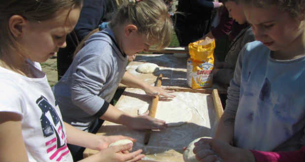 A kenyér- és lángossütés folyamatát mutatták be a Nagyberegi tájházban április 16-án és 17-én. A tájház épületének része a sütő, vagyis az a helyiség, ahol a kemence épült. A programra ezúttal Ungvárról érkeztek iskolások. A csoportoknak a két nap folyamán – csütörtökön és pénteken – egy helyi idős asszony mutatta be és tanította a kenyér- és lángossütés folyamatát. Először a kovásszal elkészített tészta dagasztását láthatták a fiatalok. Közben az összetevőkkel is megismerkedtek. Megtanulták, hogy „addig kell dagasztani a kenyeret, amíg nem csöpög a padlás”. Amíg a tészta megkelt, az iskolások kézműveskedhettek. Mindkét alkalommal a nemez megmunkálását tanulták. S hogy még szabadabban teljen az idő, az udvaron népi játékokkal játszhattak.