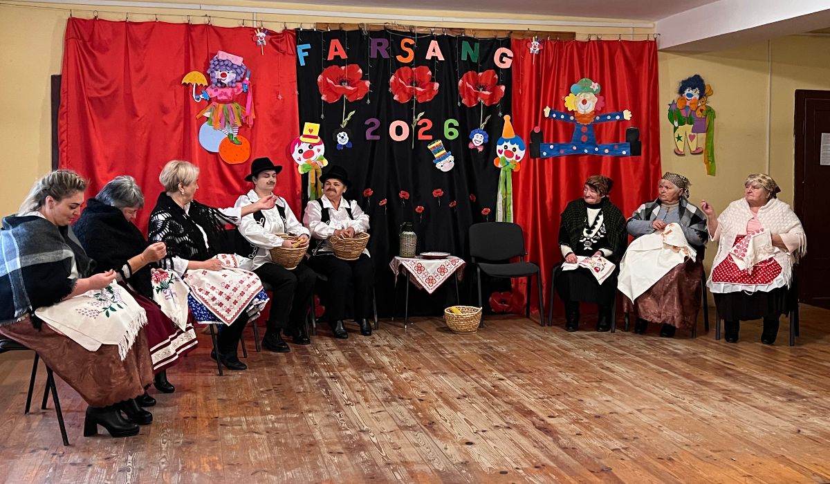 A délután nagy meglepetése volt a Falusi esték című színdarab, melyben tavaly az évfordulóra még gyerekek szerepeltek, most viszont felnőttek játszhatták el. Az előadásnak nagyon nagy sikere volt! Halász Bertalan harmonikás zenéjével valódi farsangi hangulatot teremtett. A közös éneklés sokáig eltartott, jól esett kicsiknek, nagyoknak egyaránt.