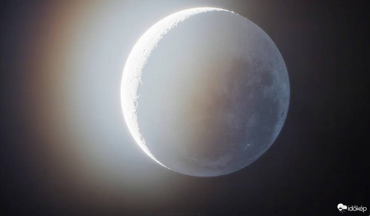 A Hold árnyékos oldalát megvilágítja a Föld által visszaverődött fény, így egyszerre láthatjuk az égitest árnyékos és megvilágított oldalát is. A Hold ezáltal egy különleges hamuszürke színt kap.