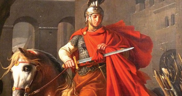 Márton Pannóniában született 316 táján, 397-ben halt meg. Katona volt, aki miután az Úr hívását meghallotta, kérte elbocsátását, amiért a császár gyávának bélyegezte. A legenda szerint Márton erre így válaszolt: „Ha kérésemet gyávaságnak becsmérled és nem hitnek, holnap védtelenül odaállok a csatasor elé, és Jézus nevében, a kereszt jelével, pajzs és sisak nélkül áthatolok az ellenségen.” Így is történt.