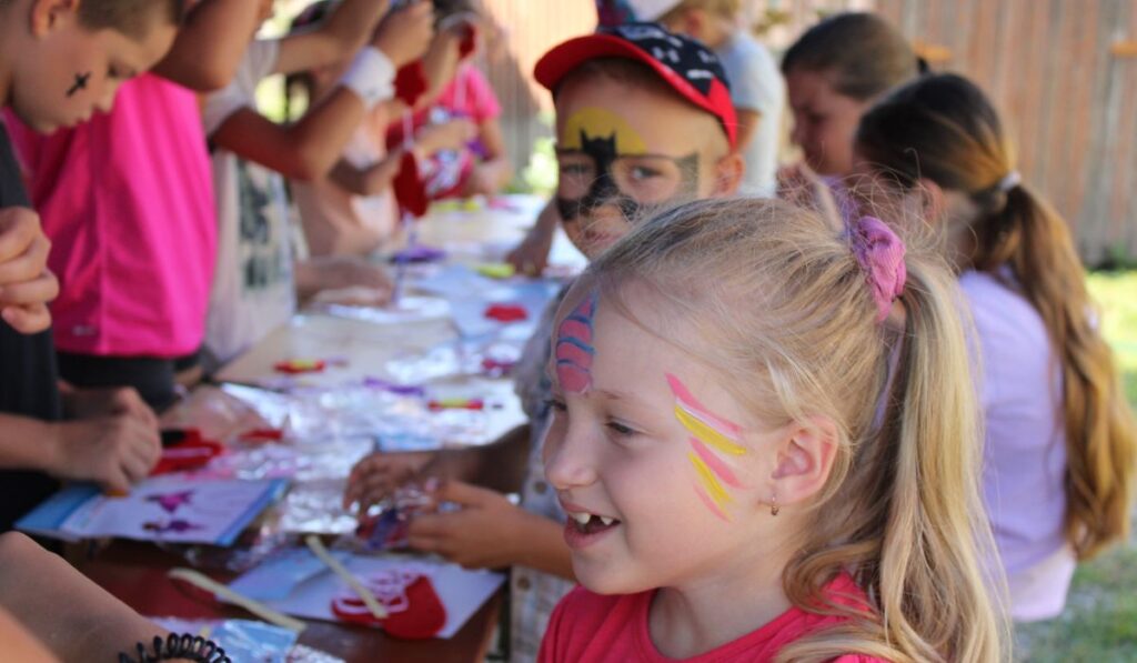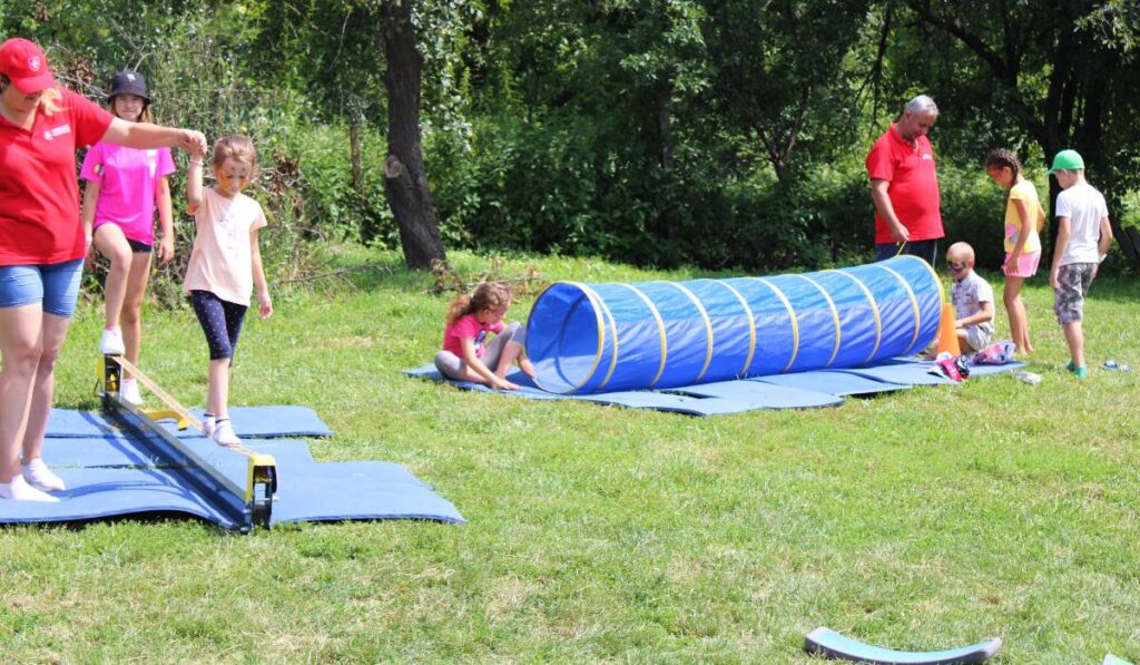 A két csoportra osztott gyereksereg nagymozgásos játékokon és artterápiás foglalkozáson vett részt. A mozgásos feladatok között volt ötötölő, akadálypálya, kooperációs ejtőernyő.